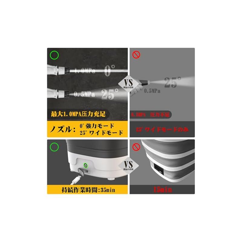全品無料。 高圧洗浄機 コードレス 折り畳み式 2025業界最新 ぴかぴか洗浄店監修 Yoeyang XS-MINI 高圧洗浄機 コンパクト12Lバケツ 収納高さ10cm USB Type-C充電 35分連続使用 PSE認証済みタンク一体型洗浄機 高圧ノズル 広角ノズル 贵重な