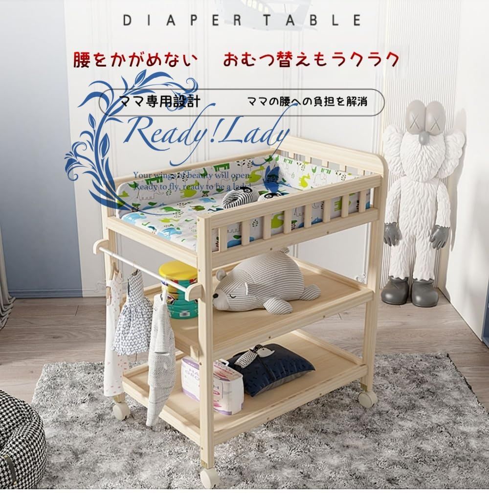 【 予約受付開始】 木製おむつ交換台 新生児 オムツ交換台 移動 収納棚 おむつ替え台 簡単設置 大容量 強耐久 キャスター付き移動楽々 多機能 ベビーケア オムツ台 家庭用|保育園|誕生祝い|出産祝 2階 おすすめ