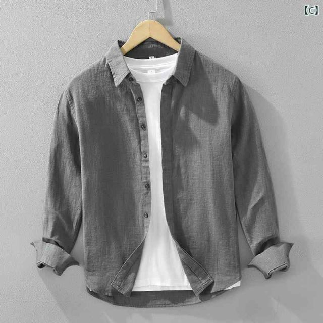 最高品質を待つ! XL メンズ ファッション 服 男性用 オシャレ シンプル 大人 かっこいい 大きいサイズ ストリート 紳士服 ラミー 無地 長袖 シャツ 夏 レトロ シンプル 綿 麻 マルチ カジュアル シャツ リネン 美しく快適に!