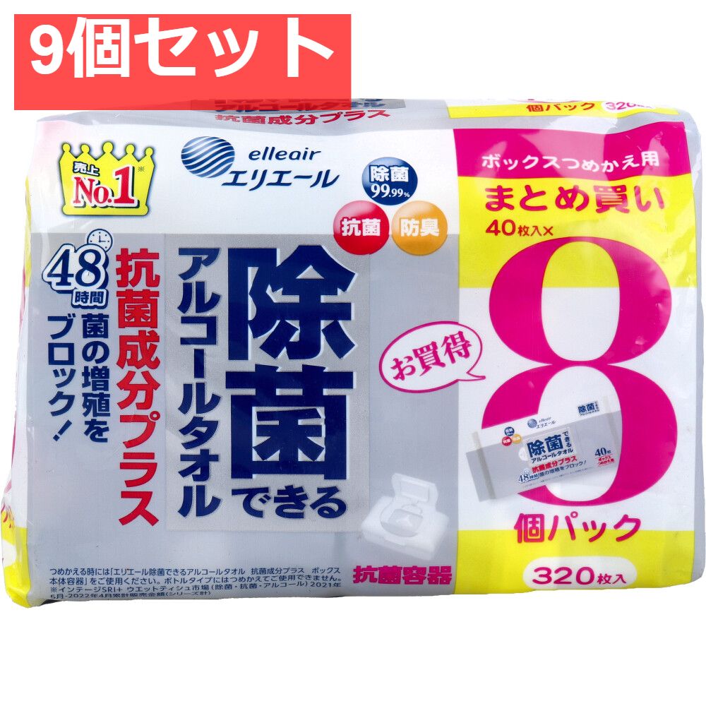 エリエール 除菌できるアルコールタオル 抗菌成分プラスボックス詰替用 40枚×8個パック 9個セット まとめ売りの検索結果