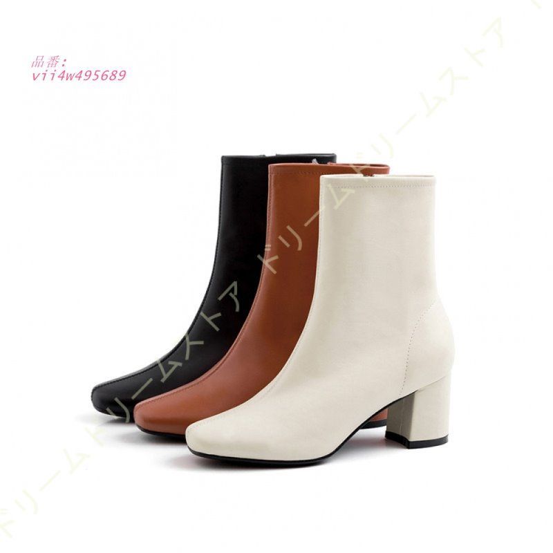 スクエアトゥ 美脚 ショートブーツ レディース アンクルブーツ 太ヒール クラシック センターシーム 甲高 ブーツ おしゃれ サイドジップ 6CMチャンキーヒール vii4w495689の検索結果