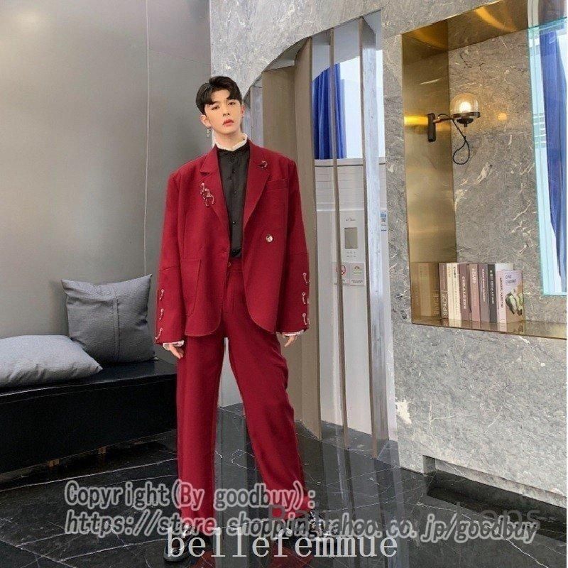 ♥ メンズジャケットスーツセットアップメンズ韓国プライベート奇抜個性セットスーツ派手ジャケットパンツ赤レッドブラック dvcp100の検索結果