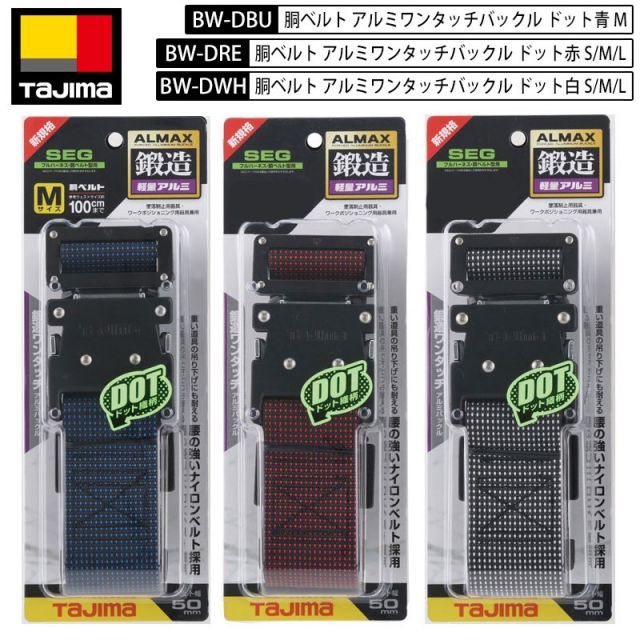 TAJIMA 胴ベルト 鍛造アルミワンタッチ 黒バックル ドット柄 50mm幅 赤 白 青 S M L BWS110-DRE BWM125-DRE BWL145-DRE BWS110-DWH BWM125-DWH BWL145-DWH BWM125-DBU WWW_GREEN-COOK_ORG