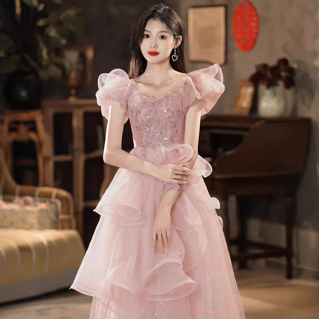 100品質保証! イブニングドレス パーティードレス ウェディングドレス 結婚式 披露宴 演奏会 オフショルダー ワンショルダ キラキラ Aライン ピンク ご来店を待ちます!
