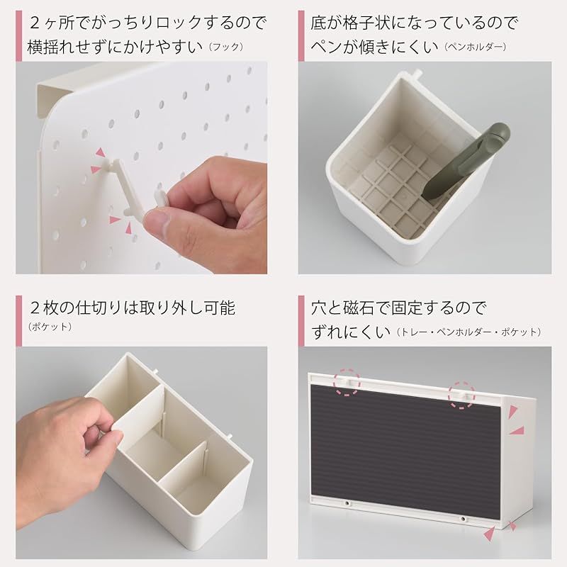 品質保証! サンカ ペグボード 持ち運びできるスチール製有孔ボード 卓上収納 マットホワイト 中 マグネット対応 フック ポケット付属ですぐに使える 持ち手付き フックがずれない 見せる収納 標準ピッチ幅 25mmなので市販のパーツも使用 有孔ボード 背面も使える 壁