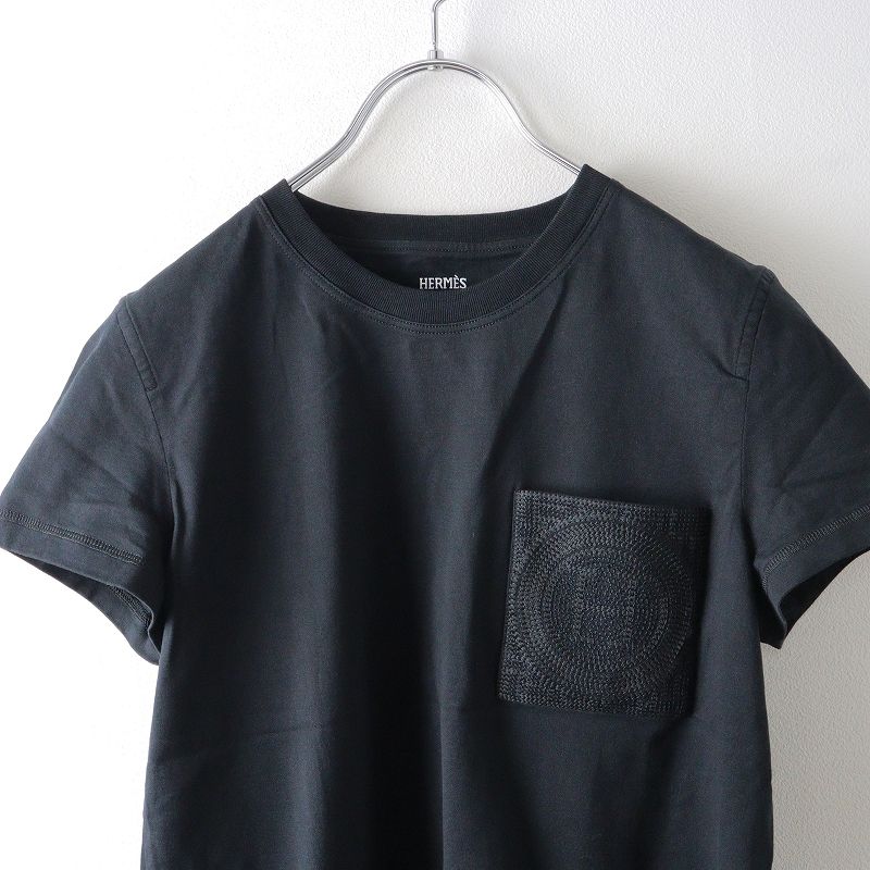 特典有 2025SS エルメス HERMES 4E4615DA H刺繍ポケット 半袖Tシャツ 38 フランス製 ブラック 黒 トップス TEE 2400014044225