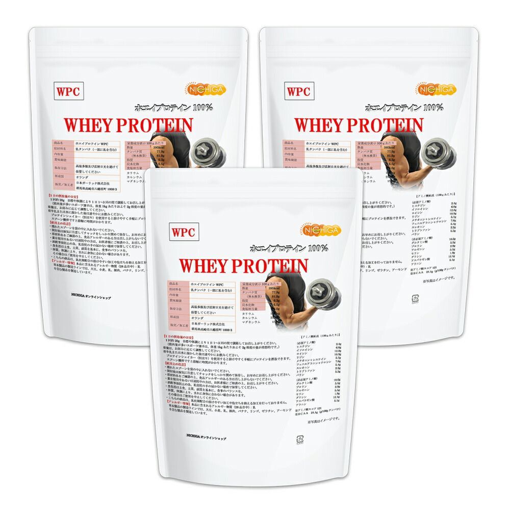 NICHIGA ニチガ公式 ホエイプロテイン WPC 1kg×3袋 沖縄を除く プレーンタイプ タンパク質含有量81.9% アミノ酸スコア100 TKS WWW_GREEN-COOK_ORG