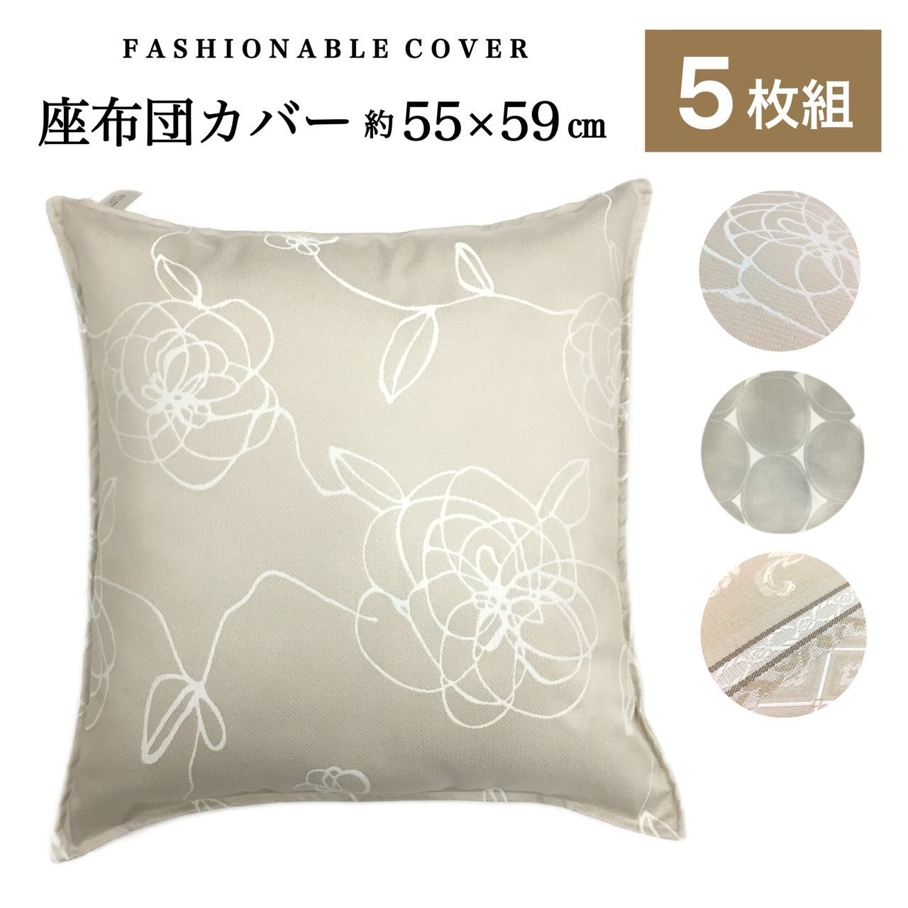品質100%保証! 5枚組 座布団カバー 5枚組 55-59 銘仙判 55×59cm 座布団 おしゃれ 両面使える 洗える ベージュ系 ブラウン系 グレー系 日本製 送料無料 サマーセール開催中!