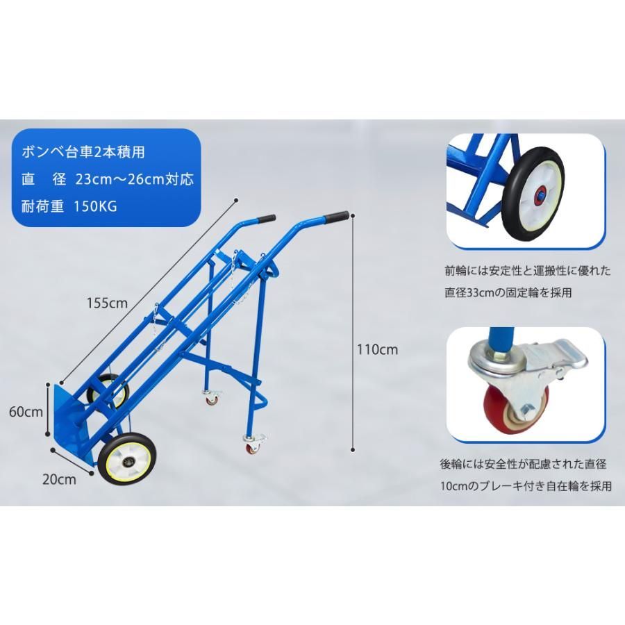 大好評 ボンベ台車 ボンベカート ボンベ2本積用 酸素 アセチレンボンベ用 4輪 ブレーキ付き ボンベスタンド 運搬車 保管 耐荷重 150kg 2本積用 WWW_GREEN-COOK_ORG